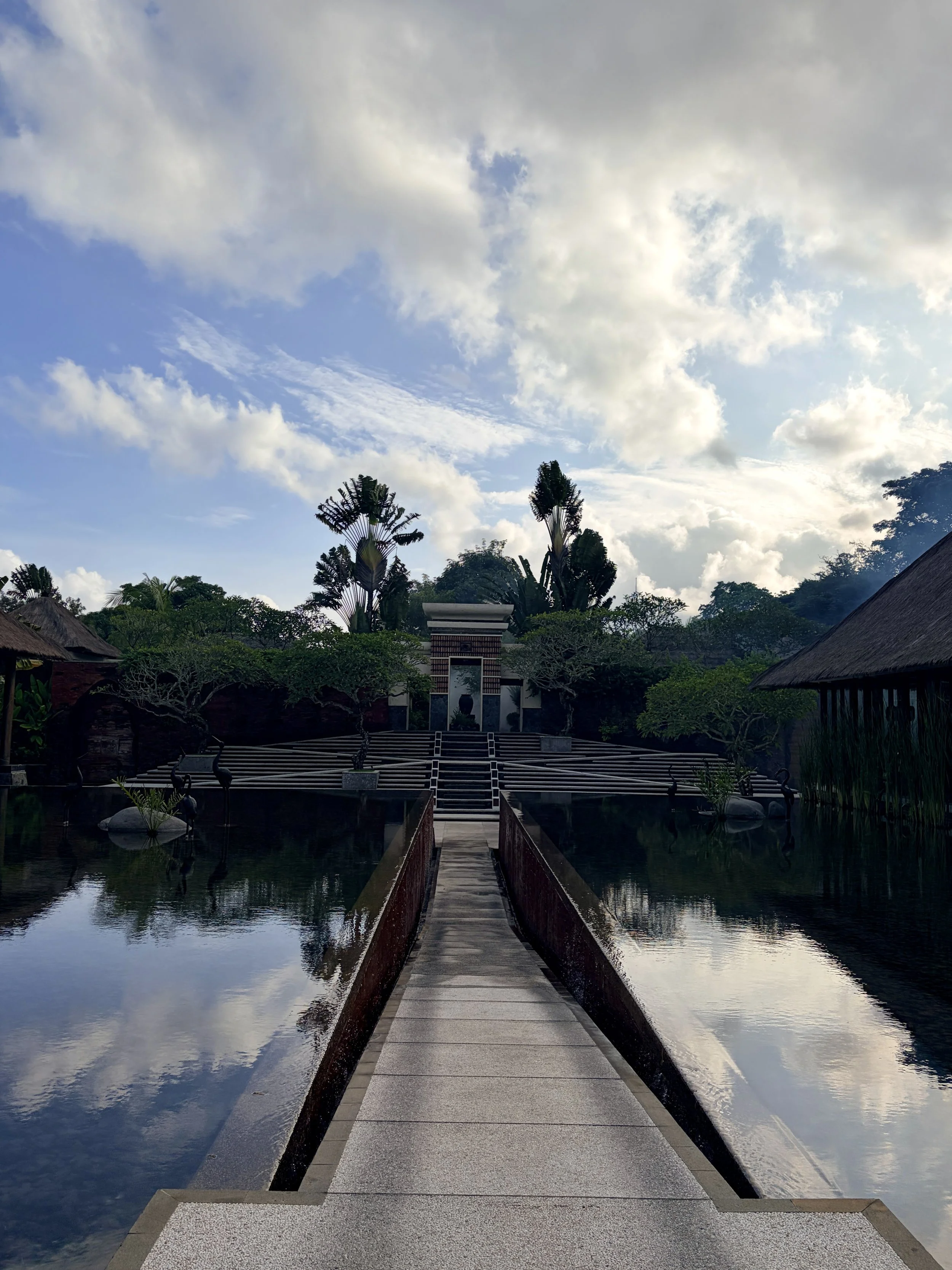 Amarterra is more than just a luxury villa stay, it’s an experience rooted in the philosophy of Tri Hita Karana, the harmony between nature, people, and the divine. Even the name reflects this balance. Amarta means water, and Terra means earth, represented throughout the property in its serene ponds, lush gardens, and grounded design. Upon arrival, we were welcomed with a traditional Balinese blessing ritual featuring fresh flowers, incense, holy water, and a Tri Datu bracelet symbolizing the Hindu trinity. It’s a small but meaningful moment that immediately connects you to the island’s spirit.