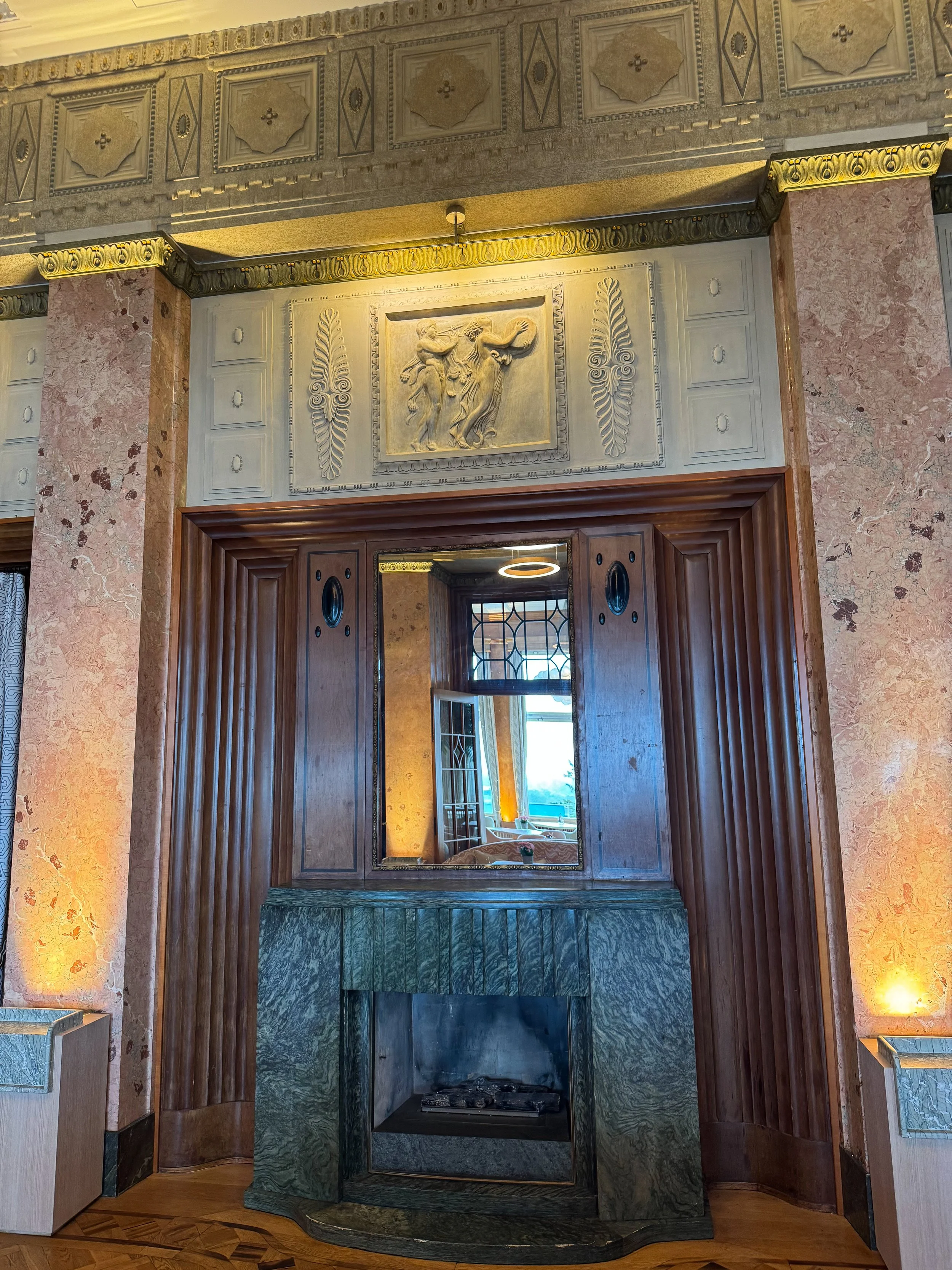 "Where Art Deco Comes Alive". The hotel fully embraces its Art Deco origins with parquet floors, bold geometric prints, rich velvet accents, and crisp design lines throughout. A comprehensive refurbishment between 1999–2003 and in subsequent years revitalized the façade, public spaces, and guest rooms, introducing elegant details like mosaic floors from Bisazza, custom lighting, and hand-crafted furniture that combine historic allure with modern sophistication. The most recent “Deluxe” guest rooms, reopened in 2022, express a palette of soft pinks, greens, and blues—reflecting the lake’s hues and embodying a fresh yet timeless elegance.