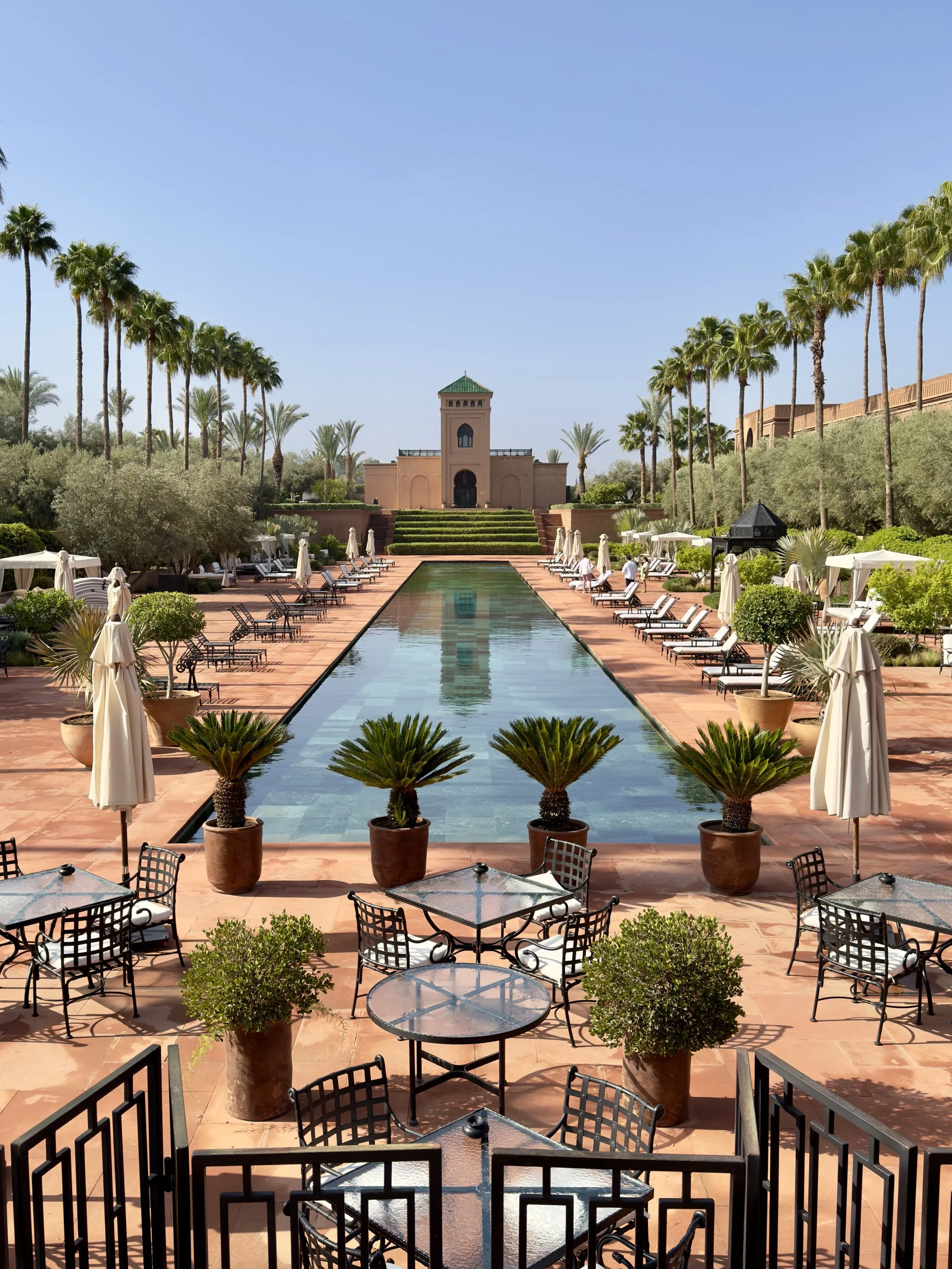 If you want to relax, this hotel has some of the most amazing facilities in the world, including an 80-meter-long swimming pool lined with tall palm trees. The true highlight for relaxation is the exclusive Chenot Spa, which is one of only six in the entire world. This stunning spa looks like an ancient heated bath from Istanbul and offers deep massages, classic Moroccan hammams, and special detox treatments to help your body and mind feel completely recharged. It is the perfect place to release all stress and find complete peace after a long day.