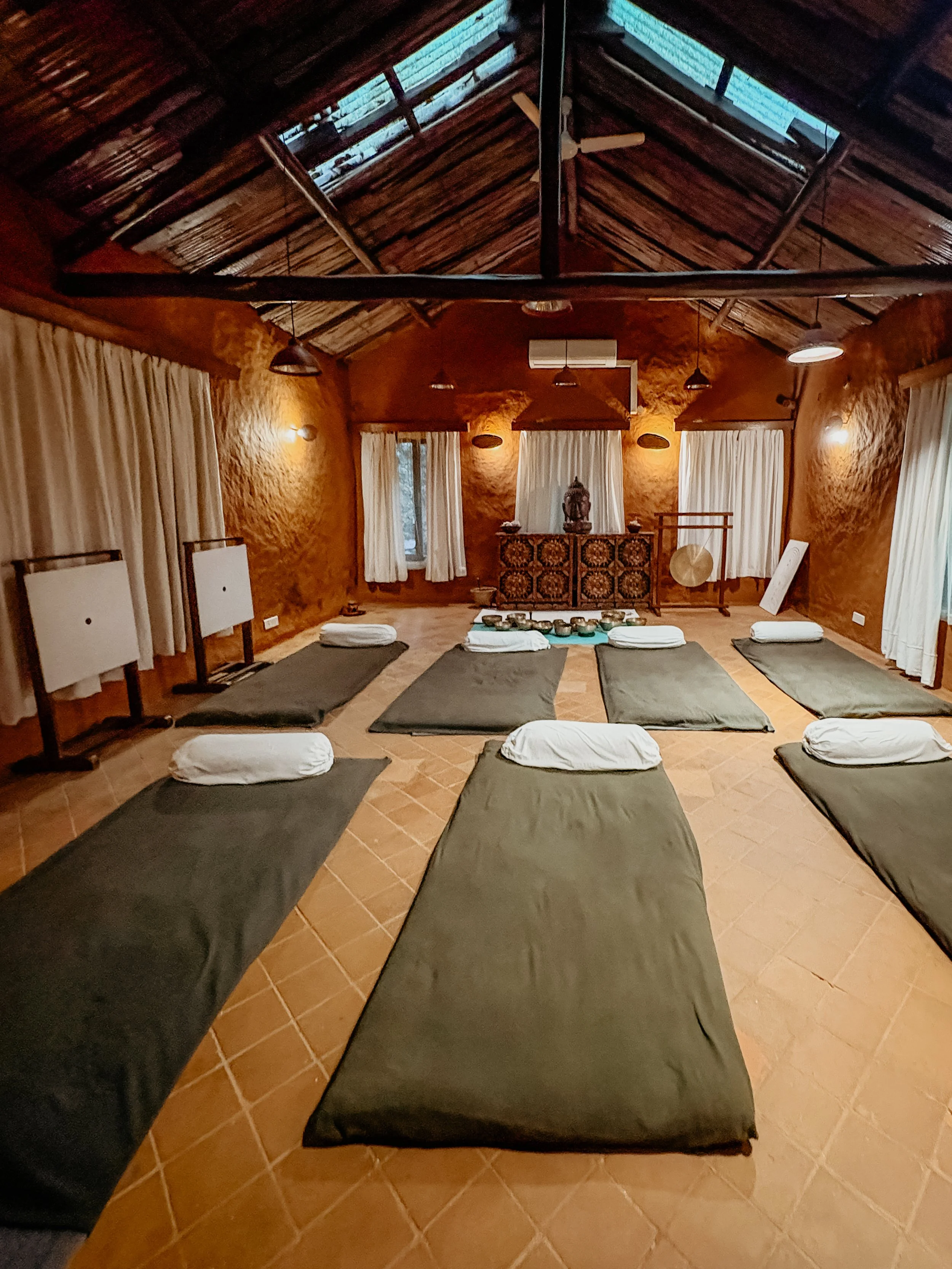 Picture waking in your woodland suite as dawn gently crowns the distant peaks. A sip of chai, a breath of crisp mountain air, then guided sunrise yoga overlooking rolling hills. Later, an herbal salt-room bath followed by a nourishing farm-to-table meal. Afternoon brings pottery beside the forest, meditation in a chakra chamber, then a Himalayan hot-stone massage by a candlelit fire. As dusk falls, views shimmer pink over the mountains, and you drift into rest refreshed, grounded, spiritually attuned.